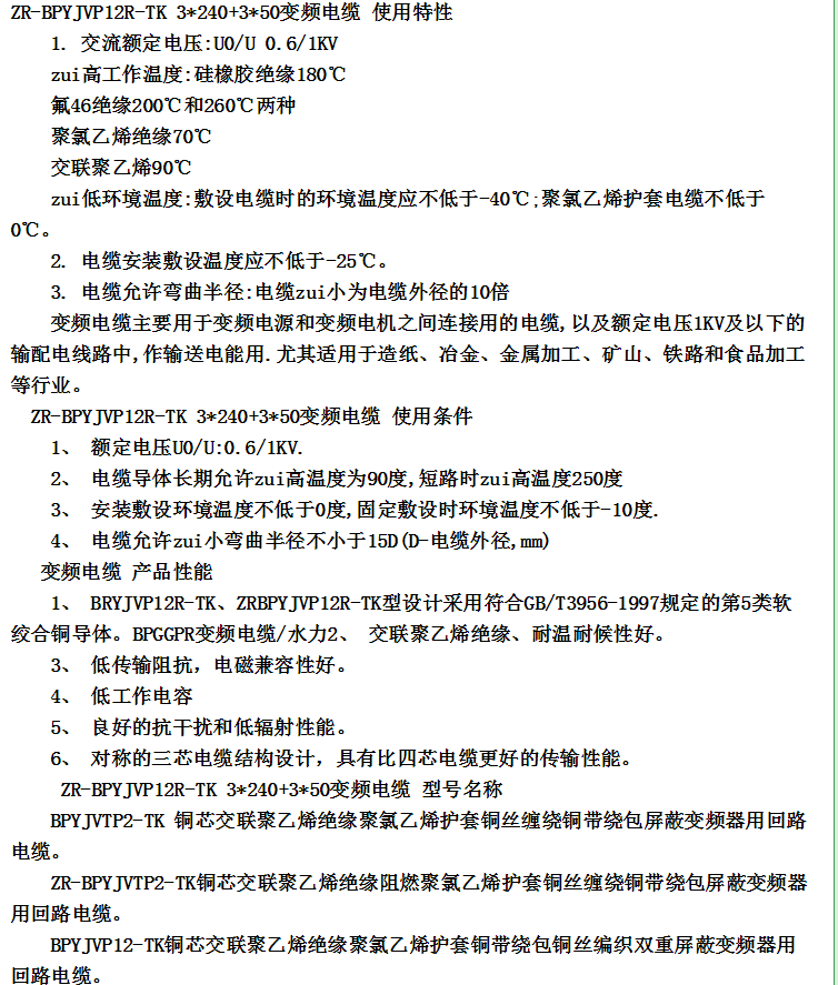 - 產品名稱:安徽天長中盛變頻電纜BPYJVP12R-TK 3*35+3*6