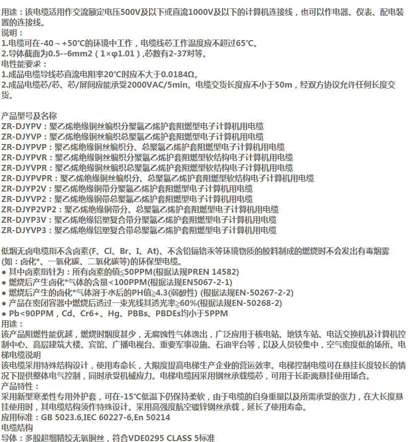 耐高溫計(jì)算機(jī)電纜ZR-DJFVP,ZR-…