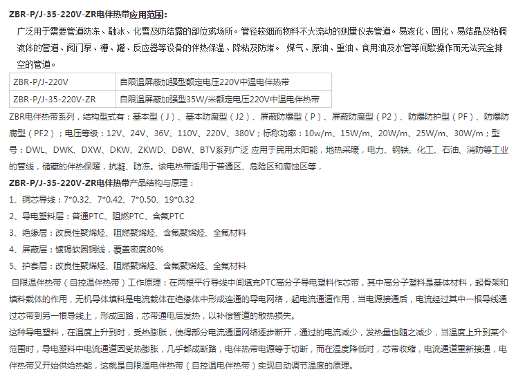 - 產品名稱:安徽天長市伴熱電纜伴熱帶ZBR-35-220-J 220V 35W
