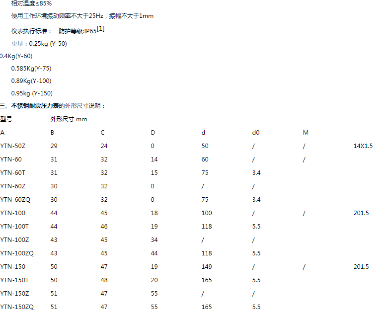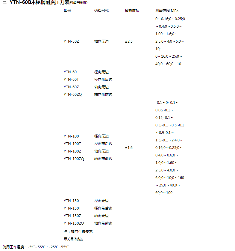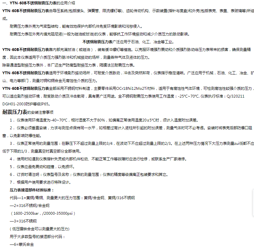 - 產品名稱:不銹鋼耐震壓力表YTN-60-B 0~1Mpa