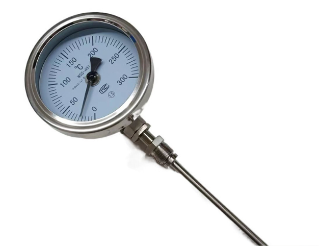 4、雙金屬溫度計保護管浸入被測介質中長度須***大于感溫元件的長度,一般浸入長度大于100mm,0-50℃量程的浸入長度大于150mm,以保證測量的準確性。