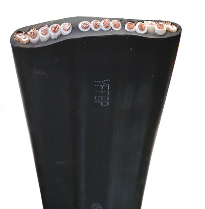 升降機或起重機連接設備可以隨設備連續彎曲使用,具有超強的彎曲性、高柔性、耐磨性、耐油污、耐腐蝕、耐寒性、防紫外線、防水、阻燃、抗張力等性能,扁電纜一般使用于工作電壓450/750V級以下,使用環境溫度-35~90℃,廣泛應用在起重、運輸、機械、電氣、礦山、冶金、港口碼頭等行業各種移動設備裝置的電源連接及信號控制等;具有以下特點:絕緣和護套等用扁電纜專用丁腈復合料;提高電纜柔軟特性以及防腐耐寒等性能;可按客戶使用要求,在線芯兩側增加鋼絲繩用來加強電纜的抗漲強度。